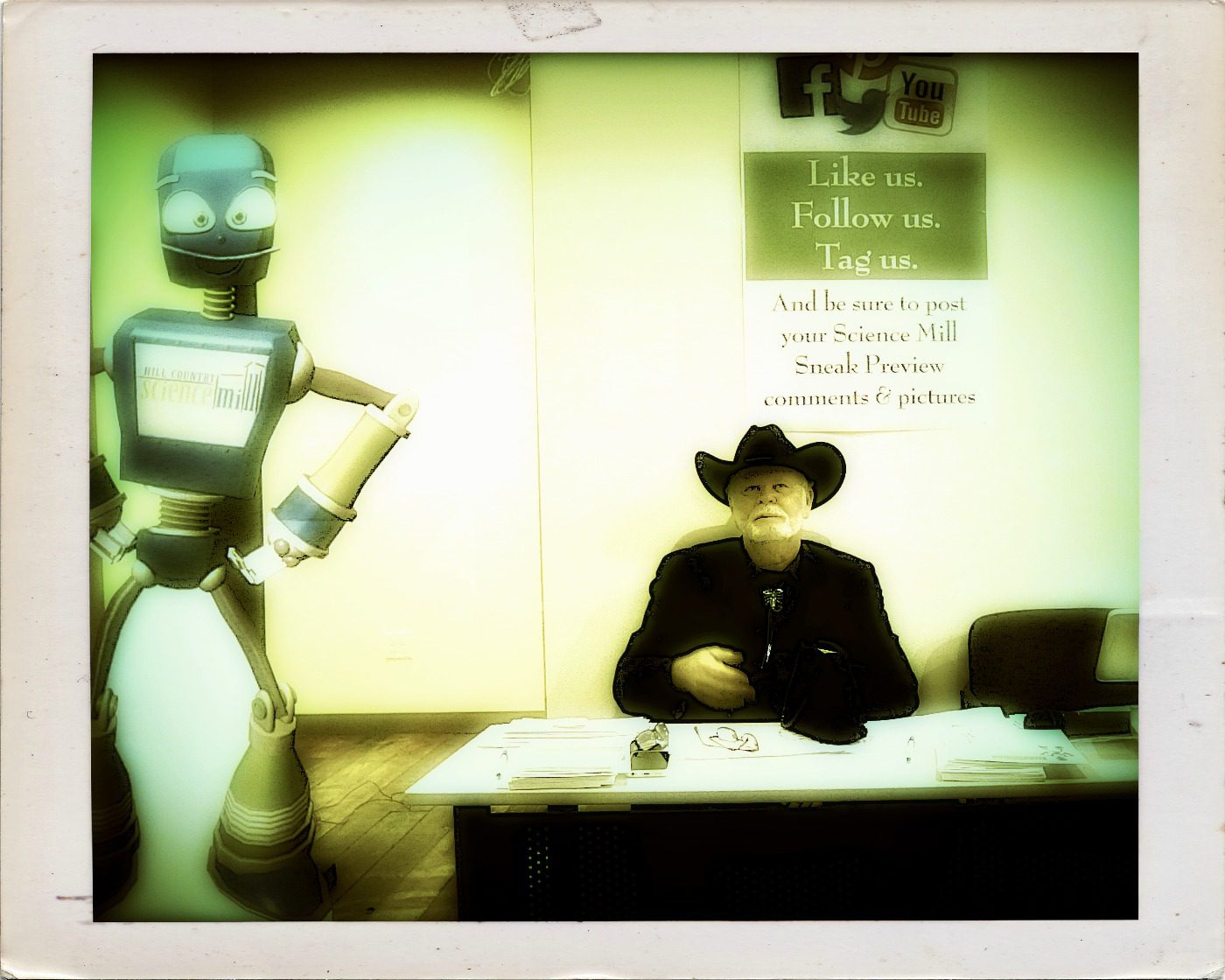 This past Saturday, Johnson City, Texas got a preview of something really, really special. When Amanda opened the gallery four and a half years ago she never envisioned being around the corner from something as cool as this. The new Hill Country Science Mill hosted a preview party and we went dressed as free range chickens, no, not really, but we did take our cameras.